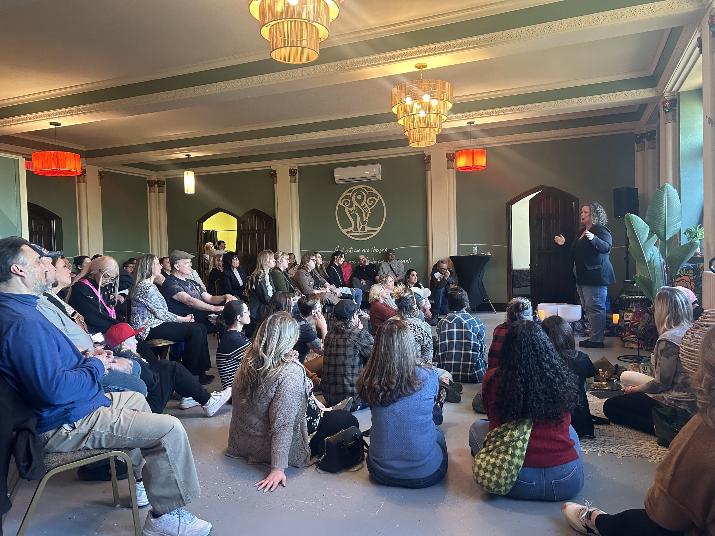 Tucked into the second floor of the Spotlight Theatre building in downtown Moline, Sanctuary is a somatic studio where every body belongs. We create a collective sense of safety from the moment you walk through our doors and sustain that safety during your entire visit with us. Hosting over 70 pay-what-you-can classes for movement and mediation, the studio space is